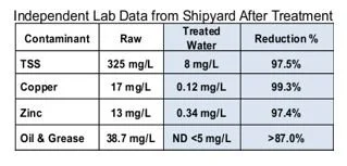 Heavy metals including copper and zinc are challenges in the marine industry. Our process very effectively removes heavy metals to levels well below sewer discharge requirements.